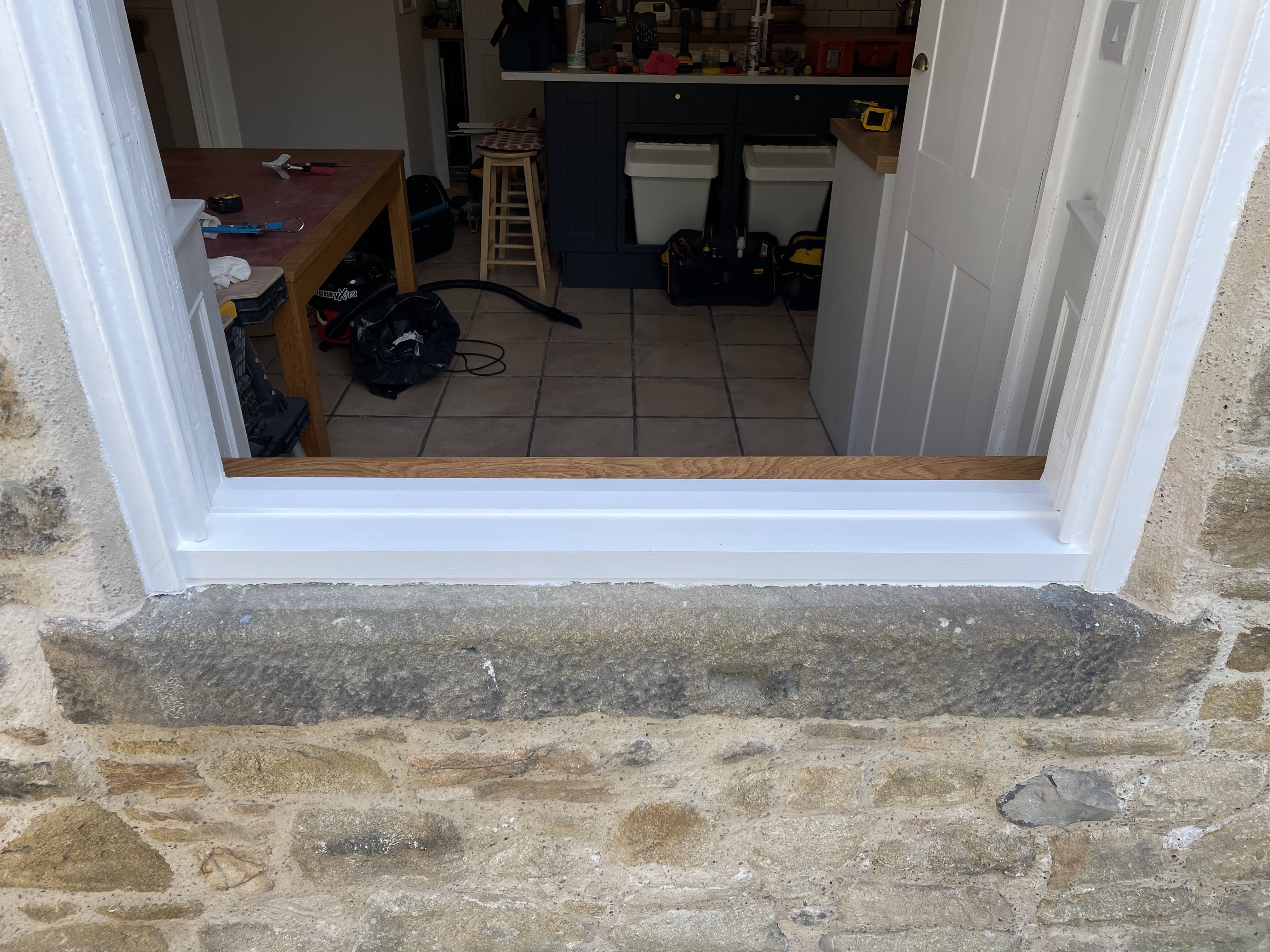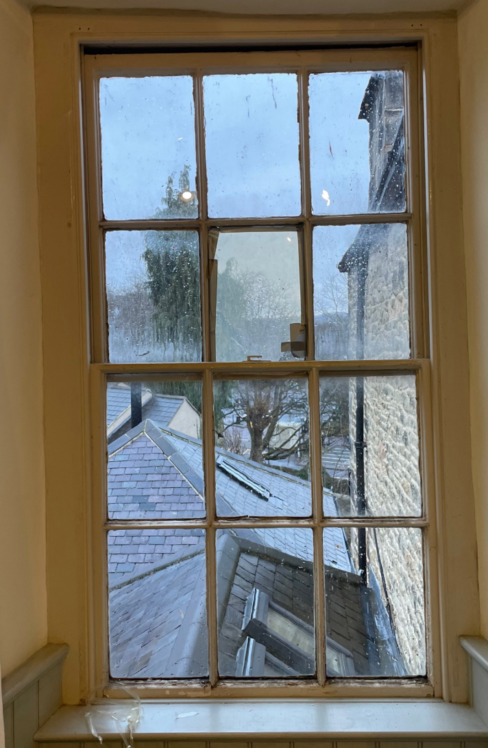“The large ‘feature’ sash overlooking the garden from our kitchen was painted shut, its sill had rotted and much of the original historic glass had sadly been lost, replaced by modern panes. Giles lovingly restored our window. Skilfully managing to save 6 original panes and sourcing 10 others of matching ‘cylinder’ glass to reinstate it throughout. You can’t even tell now and we couldn’t be happier, it’s brought new life to our living space and aligns to the careful restoration of our listed property.”